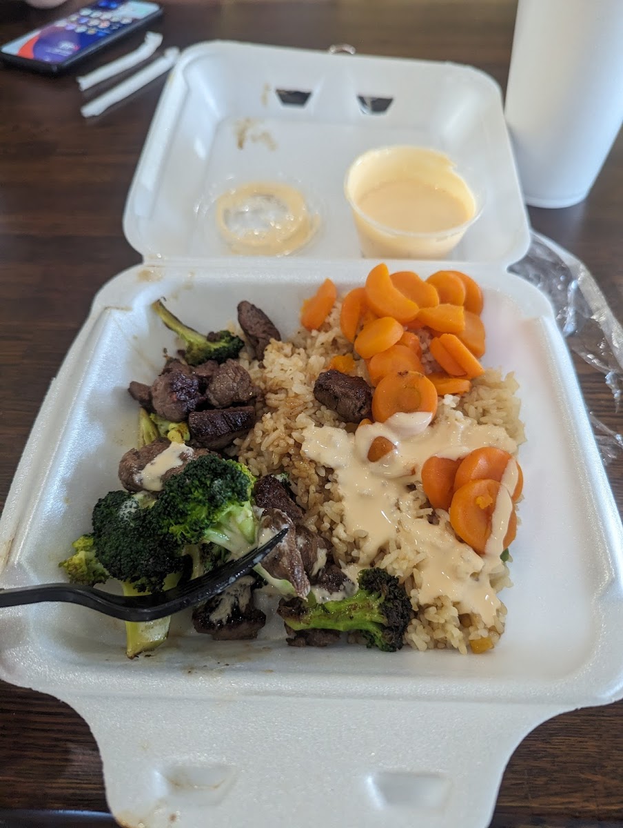 Prepare to embark on a culinary journey with their diverse menu that features mouthwatering options like the classic Hibachi Steak & Chicken, which can be customized with sides such as fried rice and zucchini, satisfying even the most discerning palates. The rich, smoky flavors of the hibachi style cooking fill the air, enticing customers with the aromatic scents of grilled meats and fresh vegetables. Their shrimp noodles are another standout, expertly prepared with a medley of vegetables, making them an ideal option for a light yet satisfying meal. Not to be overlooked, the refreshing Sweet Iced Tea and calming Hot Green Tea provide the perfect complements to your dining experience.